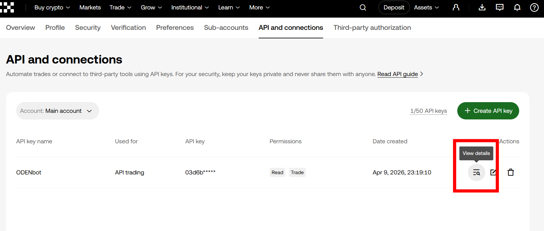 なおOKXは14日間アクセスがないAPIキーは無効化されますのでご注意ください