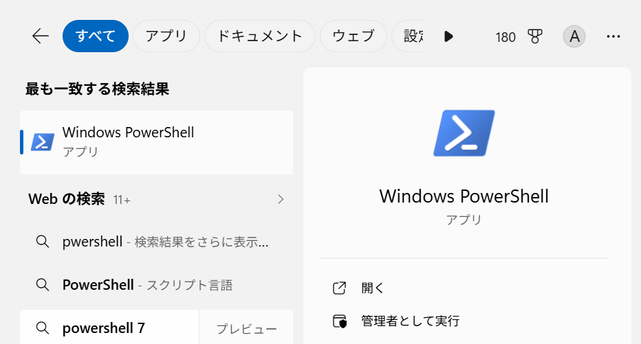 windowsに標準ではいっているPowerShellを起動します
